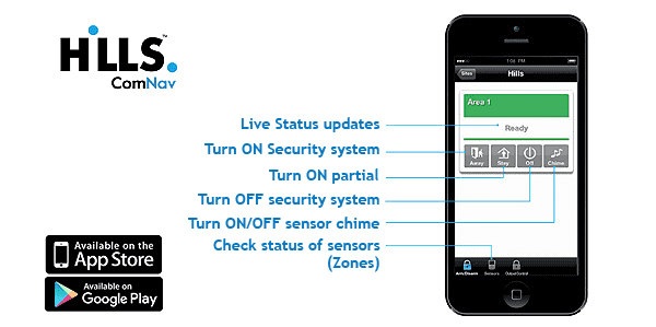 – Hills ComNav remote access module can be fitted to existing Hills Reliance home security system and requires only minimal programming.